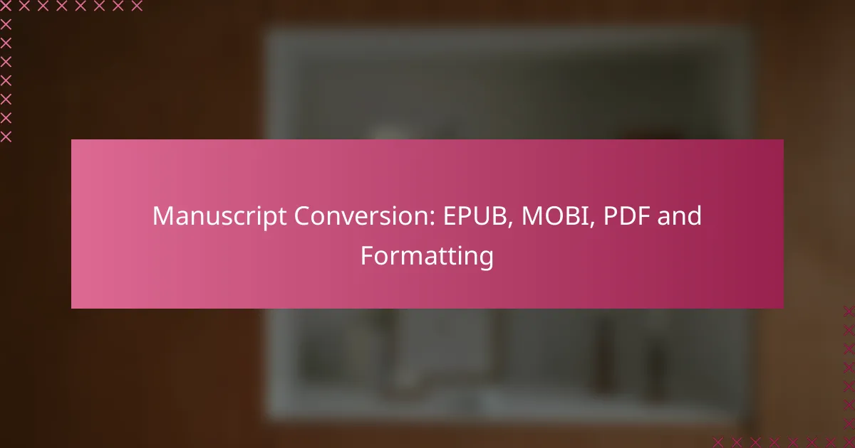Manuscript conversion is essential for reaching diverse audiences, with EPUB, MOBI, and PDF being the most common formats. Each format offers distinct benefits tailored to specific reading environments, making it crucial to choose the right one for your project. Utilizing specialized software or online tools can streamline the conversion process, ensuring your manuscript is accessible and professionally formatted.